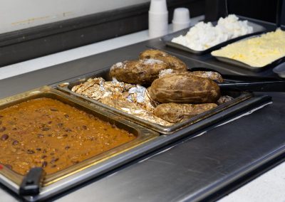Enjoy our Taco Bar with enchiladas, our fully loaded Baked Potato Bar, and a huge Salad Bar with all your favorite toppings.
